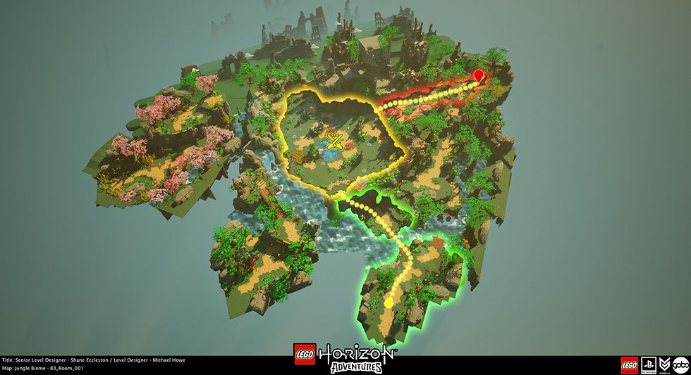 When I joined Lego Horizon Adventures, I inherited the Chapter 3: Jungle Biome levels (Except the Tallneck levels) shepherding and redesigning existing levels and bringing up new levels to an equal quality bar, ensuring parity across the chapter through to final release.